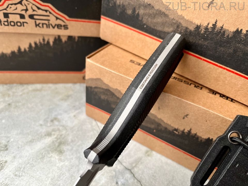 На рукояти ножа закреплены две накладки из эластрона — качественный материал с приятной текстурой, который обеспечивает надёжный хват и удобство использования. Благодаря своим тактическим свойствам, эластрон даёт комфортное удержание ножа в любых условиях.