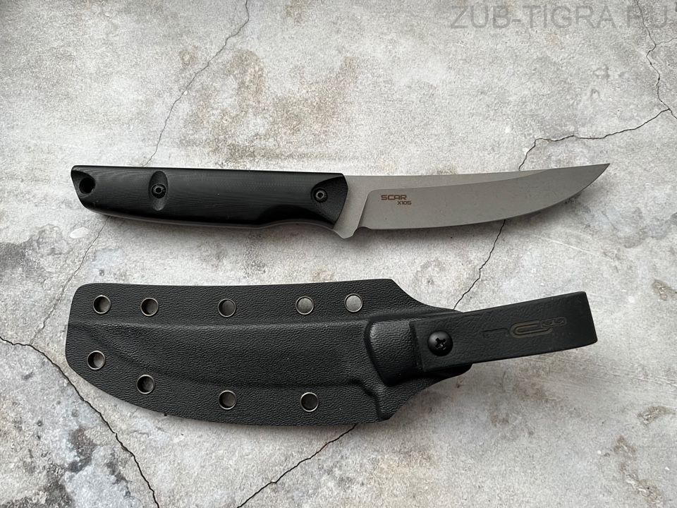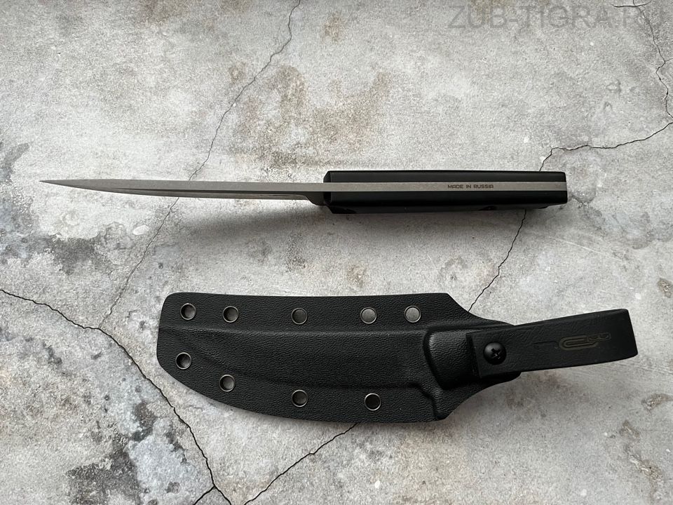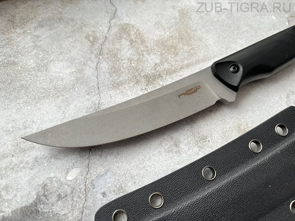 Клинок ножа выполнен из высокотвердой нержавеющей стали, которая используется для создания резцов в тяжелой металлургии. В процессе плавки сталь проходит через электромагнитный фильтр, что значительно повышает ее однородность и жесткость кристаллической решетки. В состав сплава входит элемент ванадий, который отвечает за повышенную твердость, благодаря чему режущая кромка остается острой в течение длительного времени. Хром, который также входит в состав отвечает за высокое сопротивление к ржавлению.